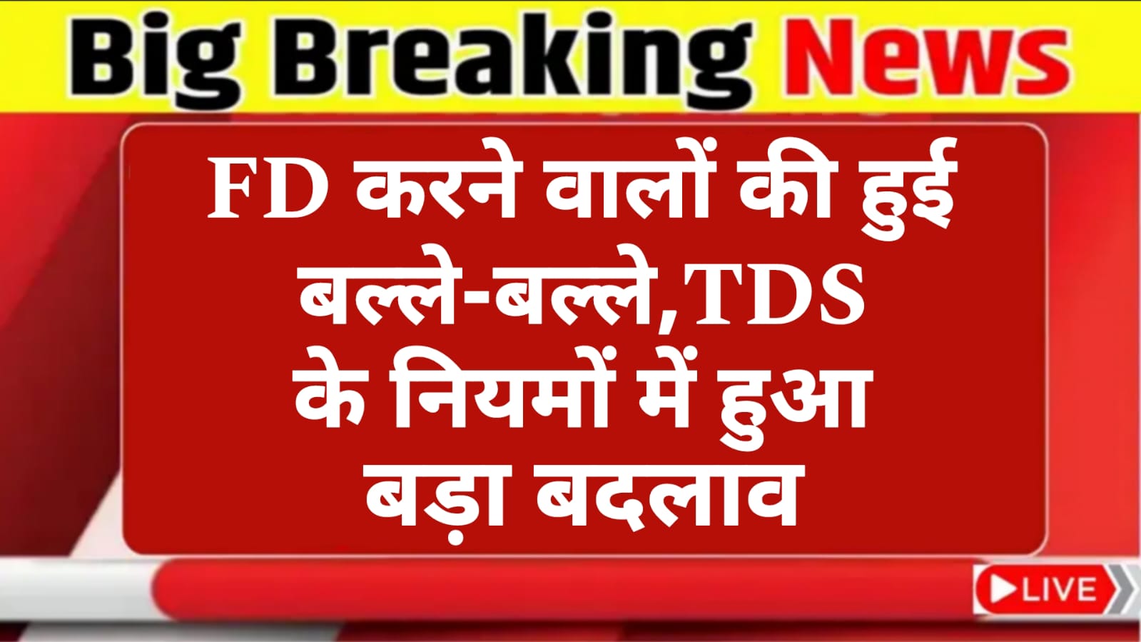TDS New Rules : FD करने वालों की हुई बल्ले- बल्ले,TDS के नियमों में हुआ बड़ा बदलाव, 15 अक्टूबर से होगा लागू ।।