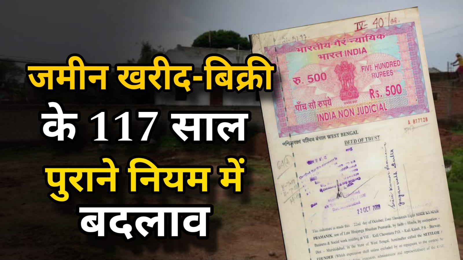 आप सभी को बता दे कि केंद्र सरकार की तरफ से ऑनलाइन रजिस्ट्रेशन को अनिवार्य बनाने और दस्तावेज के डिजिटल संरक्षण को सुनिश्चित करने के लिए एक उद्देश्य और महत्वपूर्ण विधेयक का मसौदा तैयार कर लिया है। यह प्रस्तावित कानून 117 साल पुराने रजिस्ट्रेशन अधिनियम की जगह को लेगा। बता दे कि ग्रामीण विकास मंत्रालय के अंतर्गत भूमि संसाधन विभाग के तरफ से इस मसौदे को जनता की राय के लिए जारी किया है।