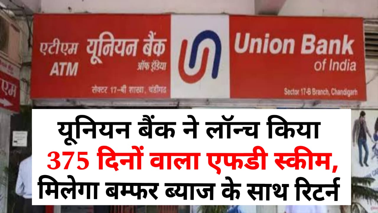 Union Bank FD Scheme : अगर आप भी एफडी स्कीम में अपने पैसे को निवेश करने का प्लान बना रहे हैं तो यह खबर आपके लिए सबसे ज्यादा फायदेमंद साबित हो सकती है। दरअसल आप सभी को बता दे की यूनियन बैंक के तरफ से 375 दिनों की एफडी स्कीम को लांच किया गया है। आईए जानते हैं यूनियन बैंक 375 दिन की एफडी स्कीम पर कितना प्रतिशत ब्याज रिटर्न दे रहा है।